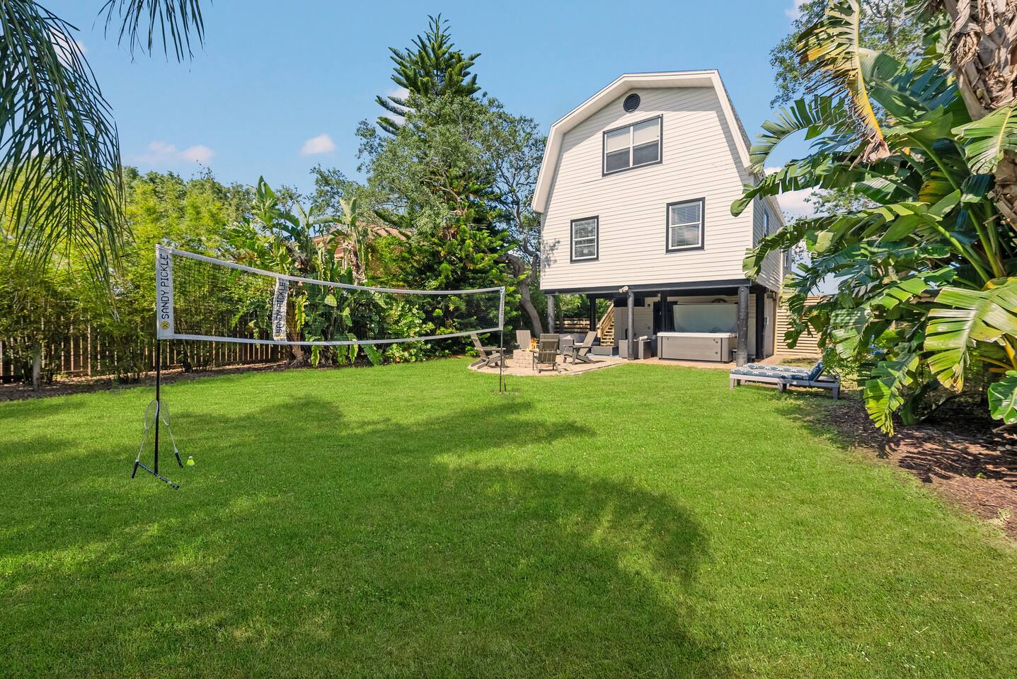 **No Service Fee** Airy comforts and a coastal vibe make it feel like you’re a local. It’s that perfect blend of relaxation and fun, wrapped in warm seaside sunshine. 🚿Hot Tub and Outdoor Shower 🍴Fully Stocked Kitchen ⛱️Front Porch w/ Grill and Furniture 🍃Oversized yard / Fully Fenced 🔥Fire Pit 🚣🏻♂️Kayaks & SUP boards 🏝️Beach Essentials 🛟Life jackets 👣Short Walk to the beach 🛜Wifi 500 Mbps 🐕 Dog welcome with fee Planning for the future? ❤️ this listing in the top right corner