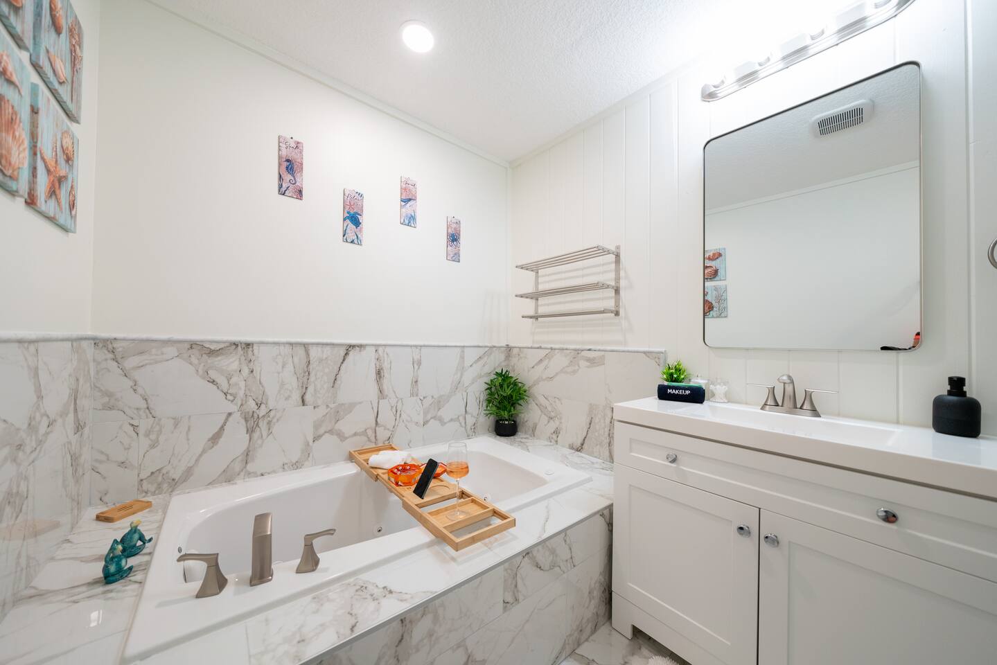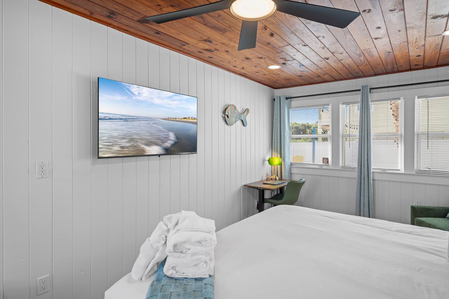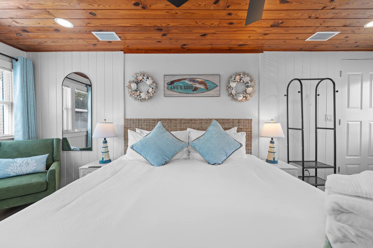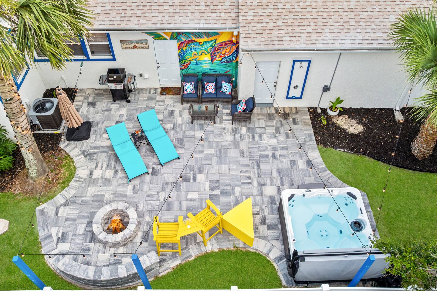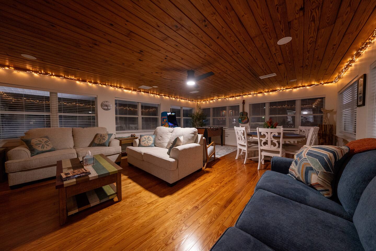 Welcome to your coastal corner escape—where flip-flops are mandatory, the vibes are laid-back, and the beach is walking distance. This family-friendly retreat sits on a spacious corner lot in the heart of Vilano Beach, offering the perfect mix of fun, comfort, and relaxation. Whether you're lounging in the 7-seater hot tub, roasting marshmallows by the fire, or heading out with boogie boards in hand, this home is made for memory-making. ▪️Inside the Retreat▪️ Living & Game Room: 🛏️ Open-concept with three sofas + queen pull-out sleeper 👾 Arcade machine & foosball table for nonstop fun 🍴Dining area for shared meals & board game nights 📺 Smart TV + high-speed WiFi Primary Suite: 🛏️ Oversized king bedroom with two closets 💄 Makeup vanity & cozy reading corner 📺 Smart TV + en suite bath with shower 👶 Kids Pack N' Play Guest Bedrooms & Baths: 🛏️ Guest Room 1: Two queen beds + lots of natural light 🛏️ Guest Room 2: Private king suite with desk + yard access 🚽1/2 Bathroom for guests 🛁 Full bathroom with detached soaking tub and walk in shower Kitchen & Dining List Includes: 1. Toaster 2. Kettle 3. Keurig and Milk Frother 4. Complete set of ceramic cookware set - pots, pans, frying pans 5. Cooking Utensils 6. Mixing bowls 7. Salad Bowl 8. Baking trays, muffin pans 9. Pizza tray for the oven (16 inches) 10. Blender 11. Instant Pot that can be a rice cooker, a pressure cooker, and an air fryer 12. Basic spices and olive oil 13. Grill utensils and a meat thermometer 14. Oven Mitts 15. Knife Set and cutting board ▪️Outdoor Paradise▪️ 😎 7 seater hot tub with massage jets 🔥 Two fire pits (propane + wood) with seating 🚿 Outdoor shower for rinsing off the sand 🏐 Volleyball net, bocce ball, corn hole & lawn games 🌊 Boogie boards for beach day adventures 🌞 Sun loungers + multiple seating areas 🐶Pet friendly ▪️Distance To▪️ Our home places you at the heart of Vilano Beach, with excellent access to some of the area's best attractions and amenities... 🔹<0.1 mi to Vilano Beach & Surfside Park 🔹<0.1 mi to pickleball, tennis & basketball courts 🔹0.6 mi to Publix & local restaurants 🔹0.9 mi to Vilano Pier + water view dining 🔹2.3 mi to aunt Kates dining 🔹2.8 mi to caps on the water dining 🔹3.1 mi to Historic Downtown St. Augustine 🔹5.4 mi to alligator farm 🔹5.8 mi to Anastasia State Park 🔹5.8 mi to St. Augustine Lighthouse 🔹8.7 mi to St. Augustine Beach ✈️51.9 mi to Jacksonville International Airport ATTENTION TO DETAIL ✔ Cleanliness is a top priority for us and we pride ourselves on welcoming you into a sparkling clean home. ✔ Our home has a washer and dryer along with ironing board and iron for your use. No detergent or dryer sheets included due to skin sensitivity. Guests must buy their own. ✔We keep a first aid kit in the primary bathroom for minor cuts and scrapes. ✔ We provide fresh premium linens for each guest. ✔ We provide basic paper goods and consumables to last 2 days - paper towels, tissues, toilet paper, dishwasher tablets, dish soap, sponges. ✔ Coffee & tea are included. Additonal Items: We do welcome dogs! Other pets will not be considered due to allergies. Must make a pet apart of your reservation for the fee to be applied. ($125.00/dog)