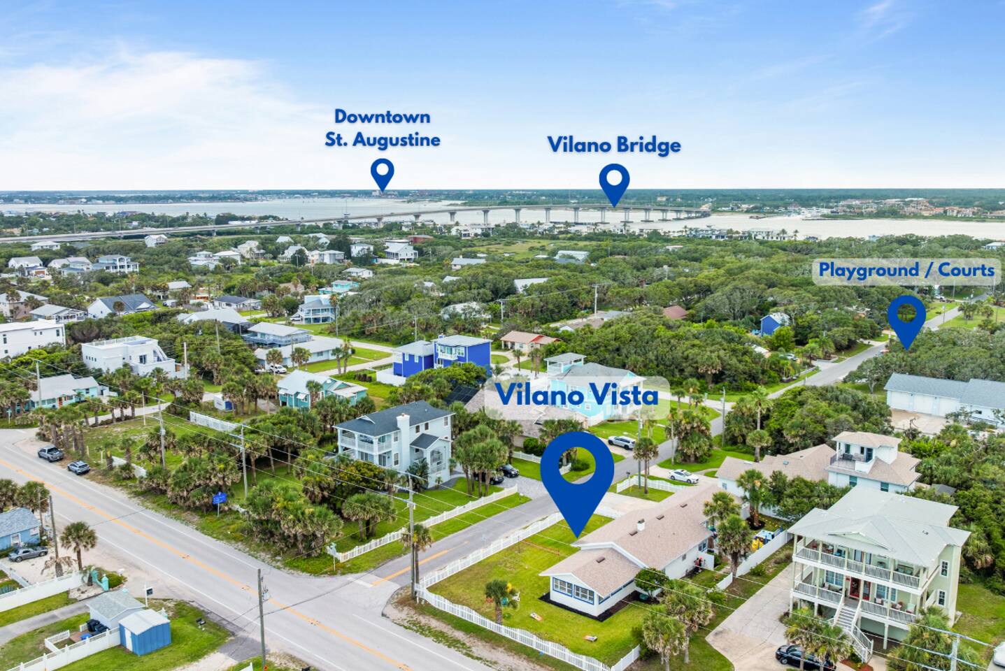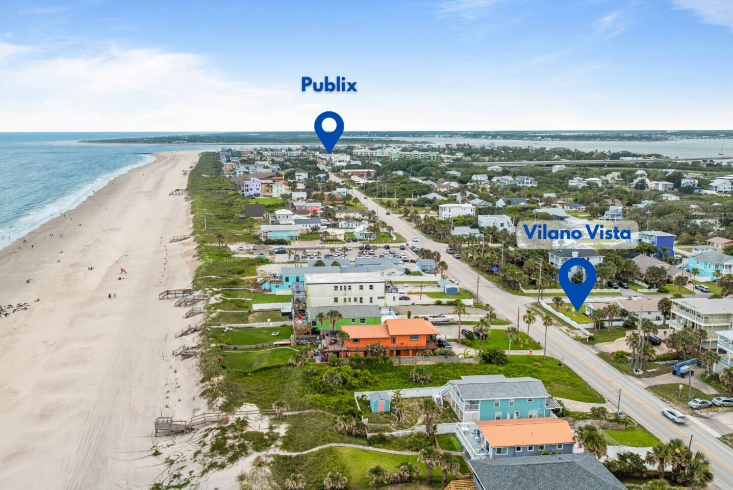 Welcome to Vilano Beach — A Laid-Back, Family-Friendly Coastal Gem Vilano Beach is the kind of beach town that makes it easy to unplug and reconnect. This neighborhood is perfect for families, with multiple beach access points, walkable parks, and a peaceful, local vibe that invites you to slow down and enjoy the sunshine. Just steps from your front door (less than 0.1 miles!), you’ll find a community center packed with family fun — including tennis courts, pickleball, basketball courts, and even the beach sheriff’s office for added peace of mind. Directly across the street is Surfside Beach Park, your go-to spot for easy, sandy access to the waves. Nearby, a newly updated kids' park with a full parking lot is underway — ideal for families with little ones looking to burn off energy in a safe, shaded space. When it’s time to restock or dine out, you’re less than a mile from Publix, boutique shops, casual eats, and stunning sunset views over the Vilano Pier and inlet. In Vilano, everything you need is close by — making it the ultimate destination for a relaxing, family-centered beach getaway.