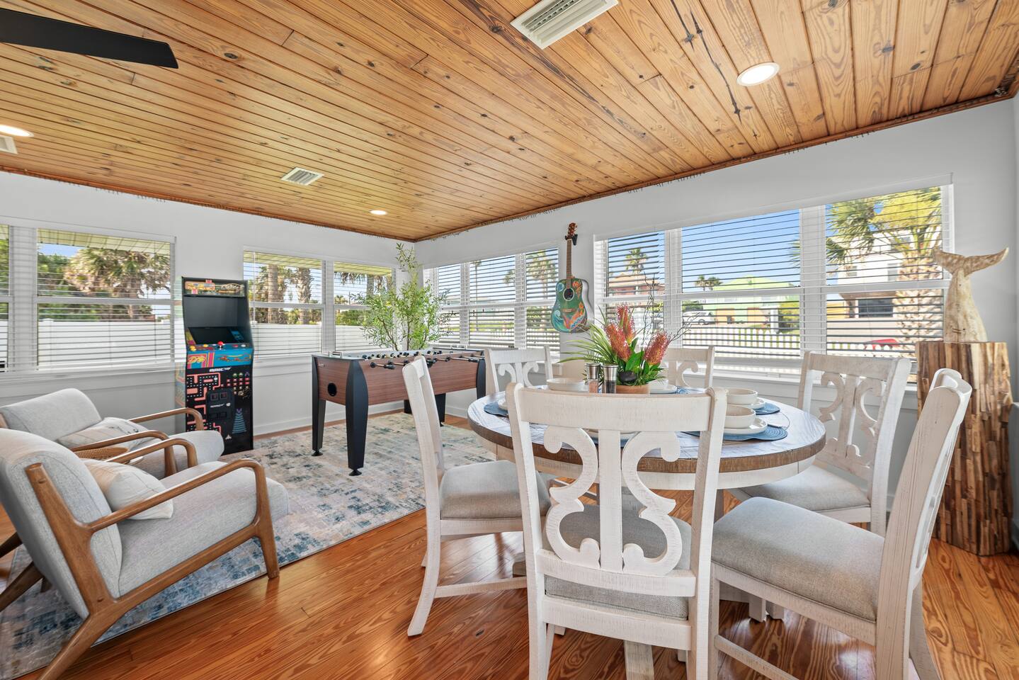 **No Service Fee** From sun filled beach days to pickleball sessions and arcade battles, this home was designed for family connection. 🚶♂️3 Min Walk to Vilano Beach + Community Park 🔥 2 Fire Pits 🛁 Hot Tub + Outdoor Shower 🎮 Arcade Games, Foosball 🏐Volleyball, Pickleball, Basketball & More! 🐾 Pet Friendly + Fully Fenced 👶 High Chair, Pack N Play, Kid Utensils 🛝 Spacious Yard 🛜 Fast WiFi + Work Desk Planning Ahead? ❤️ this listing in the top right corner