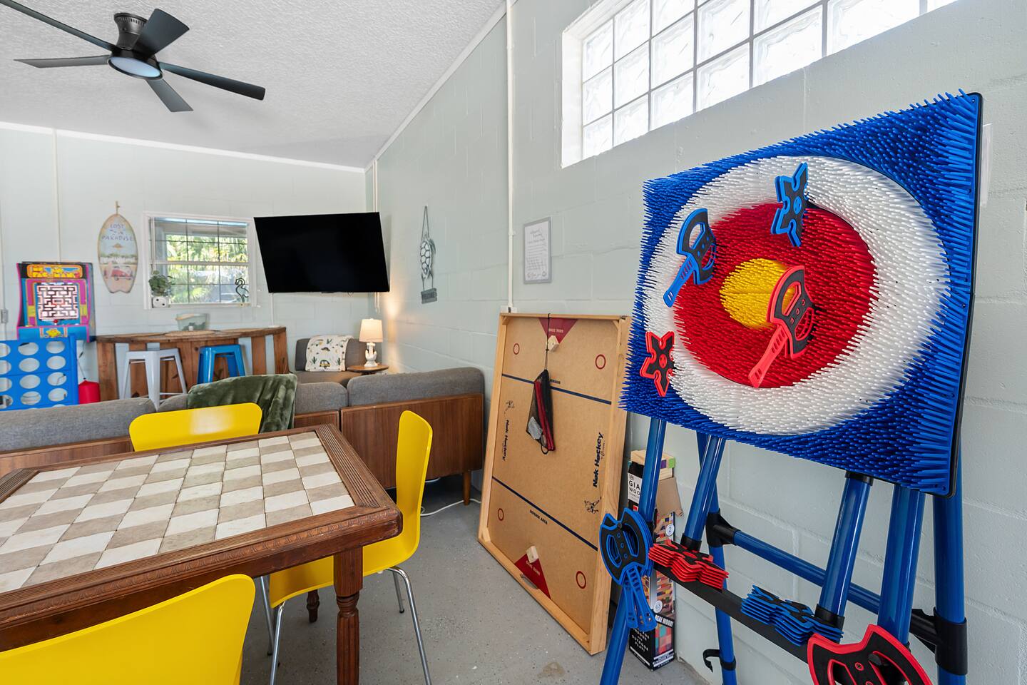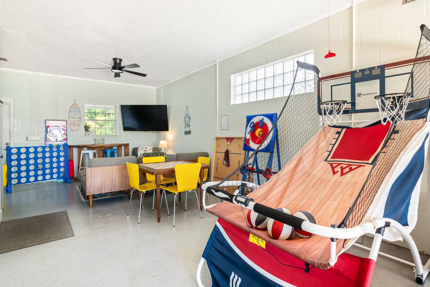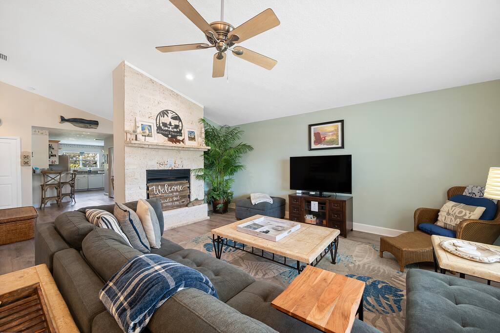 🌴Welcome to Your Private Resort Retreat 🌴 This stunning vacation rental near historic St. Augustine offers the perfect blend of luxury, comfort, and family-friendly amenities, giving you the experience of a private resort right at your fingertips. Whether you're looking to relax poolside, explore nearby beaches, or unwind in beautifully designed spaces, this home has it all. ▪️Top Features to Indulge In▪️ Unwind with access to a solar-heated pool and an inviting hot tub spa (separate heating system), allowing you to soak up the sun by day or fully relax under the stars at night. For a true resort-like experience, enjoy the light-up tiki bar, complete with a propane grill and outdoor sink—ideal for family BBQs and sunset dinners. You'll also find features such as hammocks nestled in a tranquil setting, a screened lanai with cozy furniture for ultimate relaxation, a wood-burning fire pit, perfect for roasting marshmallows and late-night conversations & a picnic table for shaded outdoor meals. We cannot forget about our game room in our garage for family fun competition! ▪️Design & Layout▪️ Ground Level: - A tranquil koi pond - Bicycles, beach gear and outdoor games ready for your seaside adventures - Game room with basketball, axe throwing, Ms. Pacman & Smart TV - A half-bathroom accessible for backyard conveinence 2nd Level (Must Walk Stairs): - Indoor Living Spaces - Bright and airy interior with large windows letting in natural light - A front porch swing and sectional sofa to enjoy sunrises or cozy evenings - Fully equipped kitchen with electric stove, dual coffee makers, and seating for meals and memories Bedrooms Designed for Serenity: - Master Bedroom: Sleeps 3 with (1) King Bed and (1) Twin Wall Bed - Guest Bedroom One: Sleeps 2 with (1) Queen Bed - Guest Bedroom Two: Sleeps 3 with (1) Double Bed and (1) Twin Bed ▪️Parking ▪️ We can park a total of 5 standard sized cars - Garage Bay (1) - Car Ports (2) - Driveway (2) ▪️Distance To▪️ • Butler Beach Access : 0.2 Miles (Walking Distance/Community Beach Access) • Crescent Beach Park: 0.4 Miles (Public Parking) • Green Road Boat Ramp: 1.0 Miles (Paddle Board and Kayak Launch) • Frank Butler County Park East Public Beach Access: 1.1 Miles • Fort Matanzas National Monument: 4.2 Miles • St. Augustine Beach: 5.2 Miles • St. Augustine Amphitheater 7.4 Miles • St. Augustine Lighthouse: 8.1 Miles • St. Augustine Alligator Farm: 8.3 Miles • St. Augustine Historic District: 10.1 Miles • Daytona Beach Int Airport: 50.2 Miles • Jacksonville Int Airport: 67.2 Miles Grocery Stores: • Winn-Dixie: 3.7 Miles • Publix: 4 Miles • Aldi: 7.8 Miles ▪️ATTENTION TO DETAIL▪️ ✔ Cleanliness is a top priority for us and we pride ourselves on welcoming you into a sparkling clean home. ✔ Our home has a washer and dryer along with ironing board and iron for your use. ✔We keep a first aid kit onsite. ✔ We provide fresh premium linens for each guest. ✔ We provide starter (2 nights) paper goods and consumables - paper towels, tissues, toilet paper, laundry soap, dishwasher tablets, dish soap, sponges. ✔ Coffee station w/ K-cups, creamers and sweeteners is included.