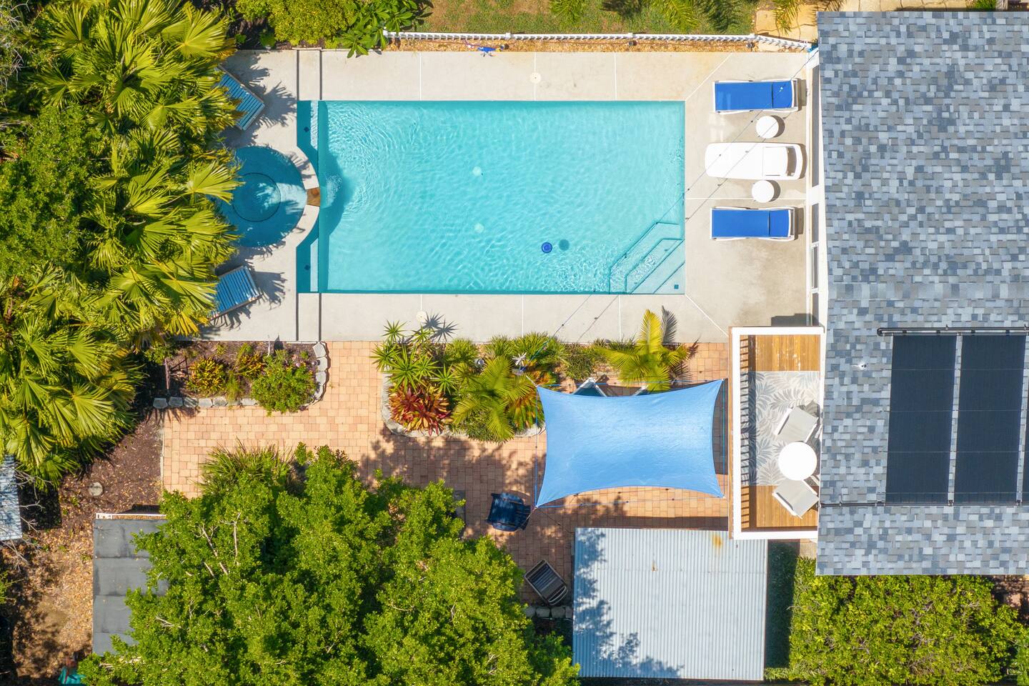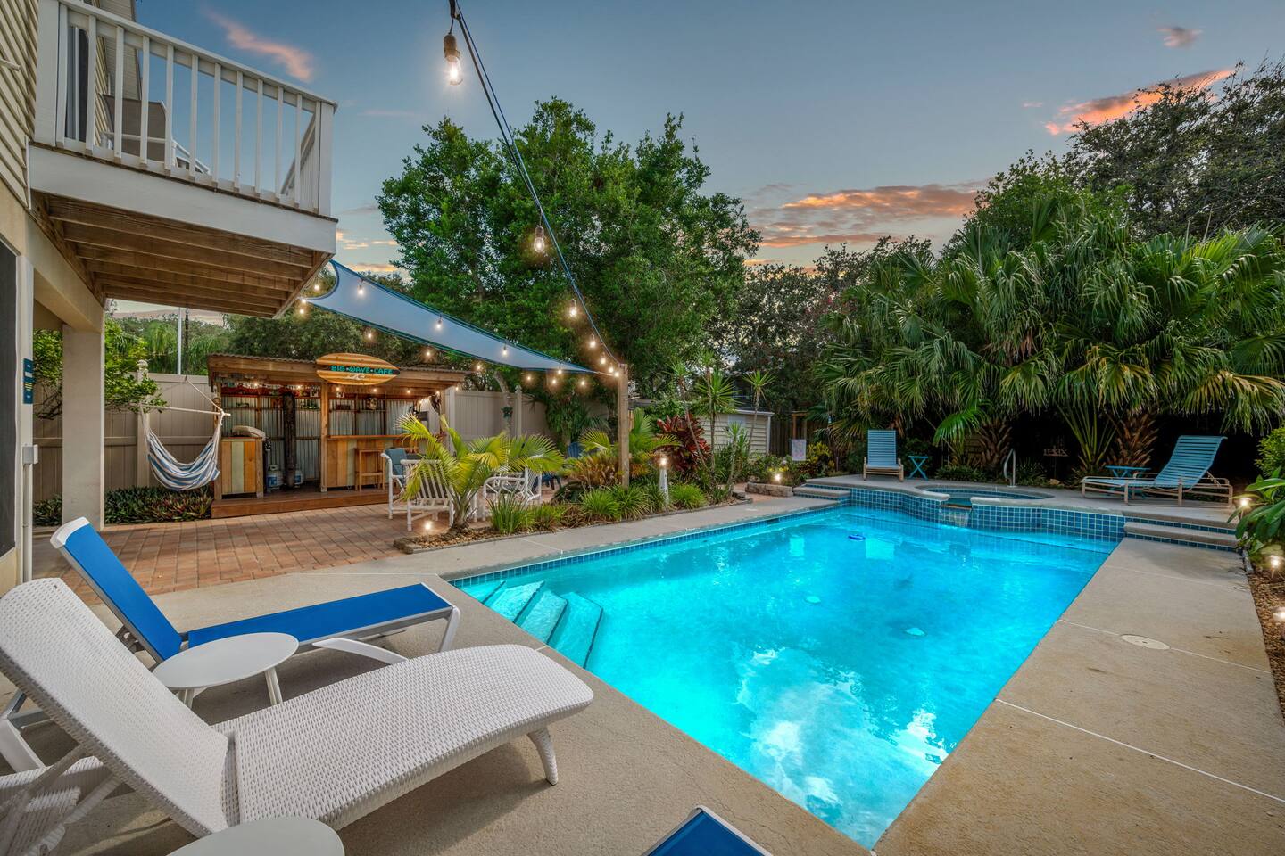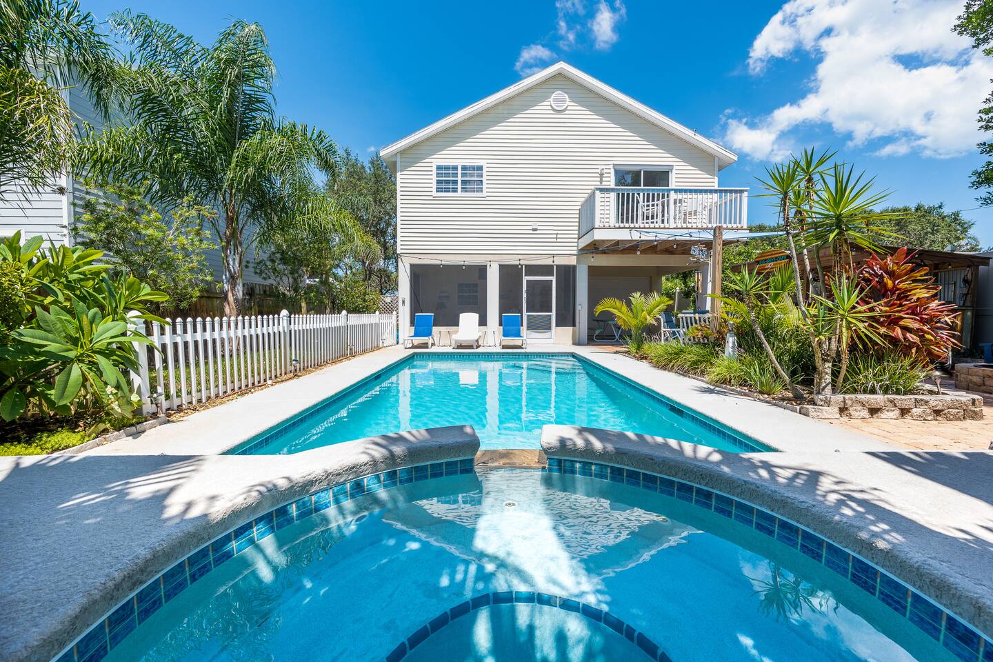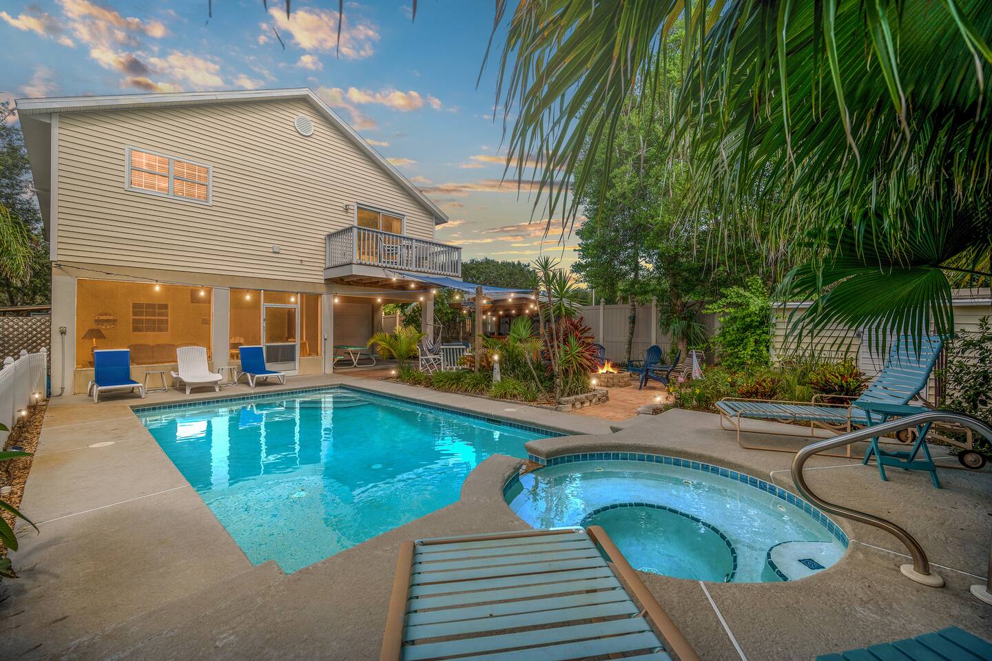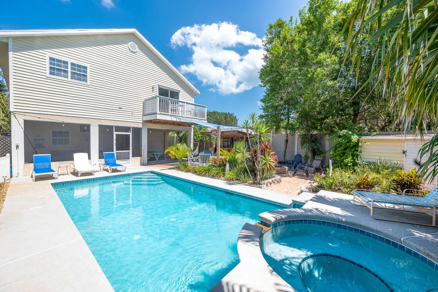 Your Private Paradise! Resort style living with the convenience of being steps away from the beach! ☀️Solar Heated Pool (Weather Dependent) 🍹Tiki Bar 🔥Heated Spa 🏄Beach/Pool toys, bikes, carts and chairs 👾Arcade Room (Garage) 🪵Propane Grill & Wood Fire Pit 🔥Indoor Fireplace 🪟Screened in Lanai 🚿Outdoor Shower 🌴Privacy Landscape 👶Baby/Toddler Friendly (high chair, pack 'n play, and safety gates) 🐶Dog Friendly 🛜1G Wifi Planning ahead? ❤️ this listing in the top right corner!