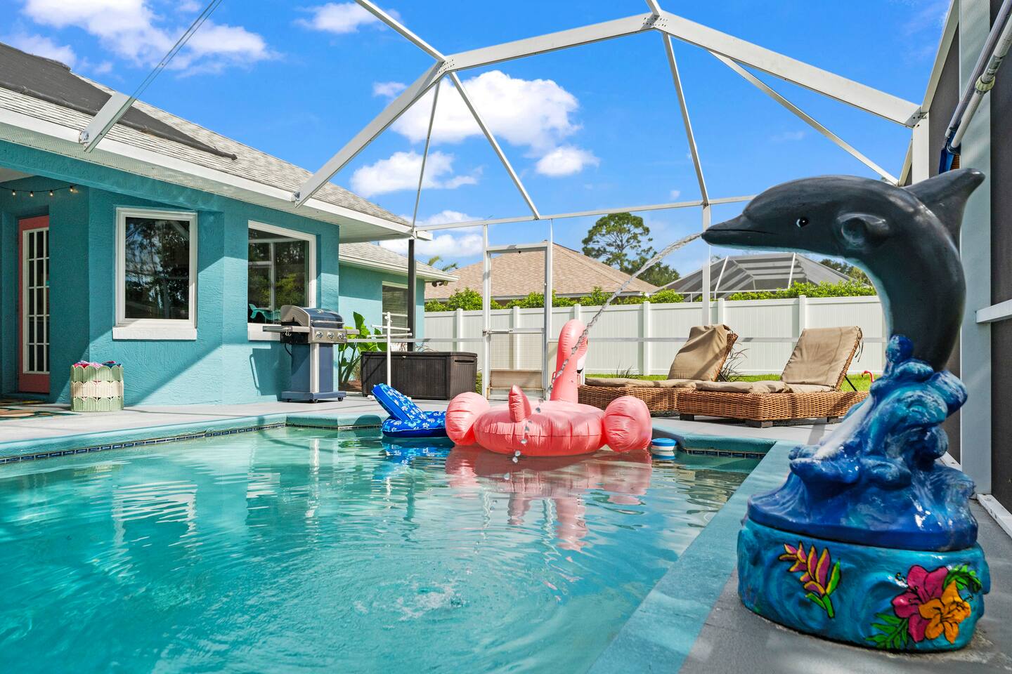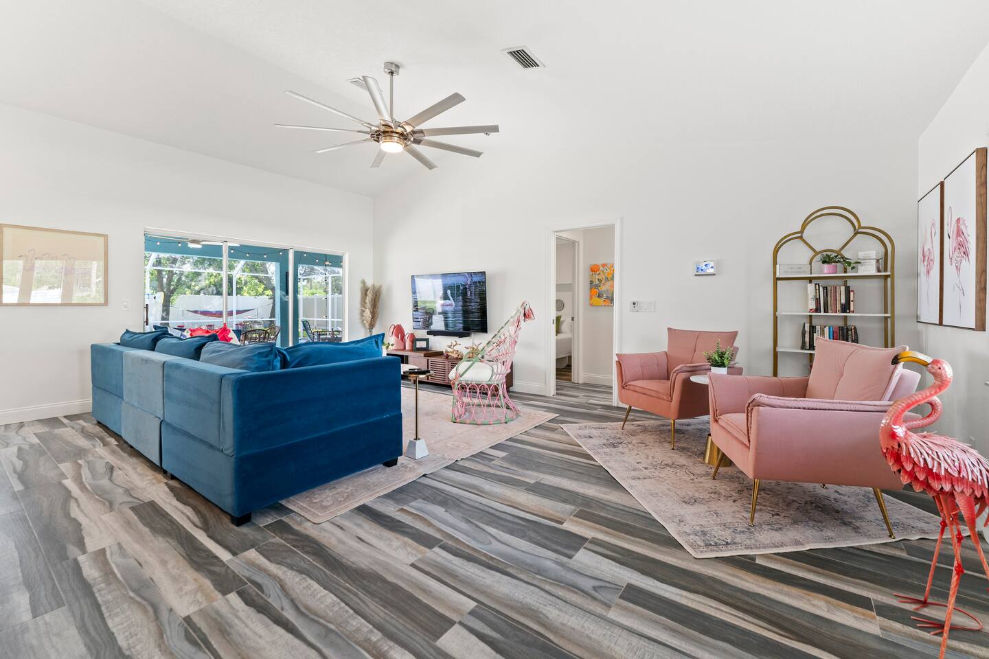 Welcome to That Flamingo House, a vibrant retreat with a heated saltwater pool and tropical charm! 🏝️ Heated Saltwater Pool 🦩 Flamingo-Inspired Tropical Décor 🛋️ Spacious Indoor & Outdoor Living 🍴 Fully Equipped Kitchen with Modern Appliances 📺 Smart TVs + High-Speed WiFi 🔥 Outdoor Grill Planning ahead? ❤️ this listing in the top corner!