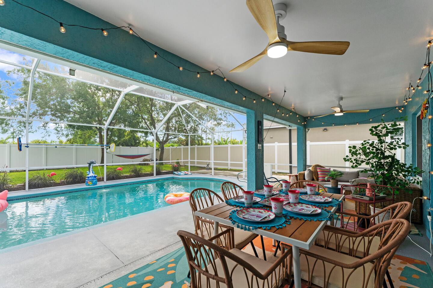 Tropical Backyd Oasis! Covered Pool, BBQ + Dining!