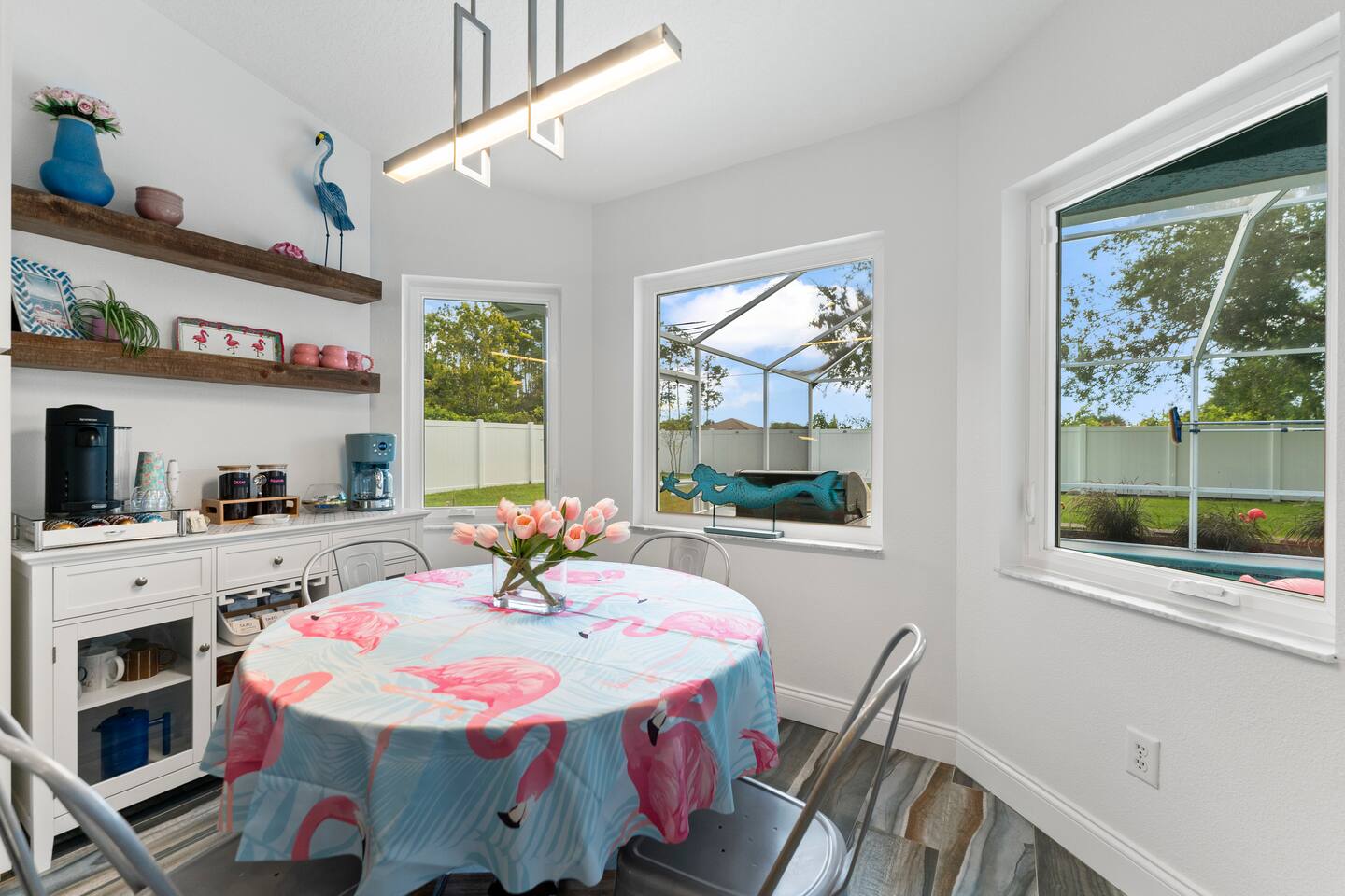 🦩 Welcome to That Flamingo House! A vibrant retreat with a heated saltwater pool and cheerful flamingo charm, located in Palm Coast. Designed for unforgettable getaways, The Flamingo House offers a playful yet relaxing atmosphere perfect for families, friends, or couples. Whether you’re soaking in the saltwater pool, grilling outdoors, or exploring nearby beaches, this home blends tropical style with modern comfort to create lasting memories. 🏡 The Space This delightful retreat flows seamlessly between bright, airy interiors and a lush outdoor oasis, delivering a stay that’s as fun as it is comfortable. 🛋️ Living Room Gather in the cheerful open-concept living area with plush seating, bold flamingo décor, and abundant natural light. A Smart TV and high-speed WiFi make it easy to relax or stay connected. 🍳 Kitchen & Dining Fully equipped kitchen with modern appliances Stocked with cookware, utensils, and essentials Dining table for shared meals, games, or late-night chats 🛌 Bedrooms & Bathrooms Cozy Bedrooms: Thoughtfully decorated with comfort in mind, perfect for restful nights Spa-Like Bathrooms: Modern fixtures, soothing décor, and premium amenities designed to refresh and pamper 🌴 Outdoor Living Step into your tropical paradise and embrace the playful vibe of The Flamingo House: 🏝️ Heated Saltwater Pool surrounded by lush landscaping and flamingo-inspired décor 🍴 BBQ Grill + Outdoor Dining for fun meals al fresco ☀️ Outdoor Seating & Loungers for soaking up the sun Bring your furry friend along! The Flamingo House welcomes dogs so the whole family can enjoy the fun. 📍 Location Located at Palm Coast, That Flamingo House offers a convenient setting between St. Augustine and Daytona Beach. Enjoy the best of both worlds: a quiet neighborhood for relaxation, with sandy beaches, dining, shopping, and family attractions just a short drive away. 💕 Designed for Every Stay Whether you’re lounging by the pool, enjoying a BBQ, pampering yourself in spa-like bathrooms, or setting up at the workspace for a productive day, That Flamingo House is built for both relaxation and convenience. ✨ Every detail is designed to create a cheerful, laid-back, and unforgettable retreat.