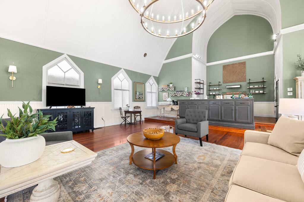 Where Sacred Architecture Meets Modern Comfort in the Heart of St. Augustine Just a short stroll from downtown’s historic streets, this one-of-a-kind converted church invites you to stay, gather, and be inspired. With soaring cathedral ceilings, sunlit arched windows, and space for up to 10 guests, this 2-bedroom, 2-bath home blends timeless soul with modern design. ✨ The Space Step inside a sanctuary reimagined — where rich wood floors meet grand vaulted ceilings and open, airy living spaces made for connection. 🛋️ Living & Dining: • Expansive open-concept layout beneath the original church arches • Thoughtfully curated furniture for style and comfort • Perfect for family dinners, celebrations, or peaceful retreats 🛏️ Bedrooms & Bathrooms: • 2 beautifully designed bedrooms + flexible sleeping areas for up to 10 guests • 2 modern bathrooms with vintage-inspired touches • Ideal for families, groups, or couples seeking a unique stay 🍳 Chef’s Kitchen: • Fully equipped with appliances and quality cookware • Spacious island perfect for gathering and preparing meals together • Designed for easy entertaining 🌆 Prime Location: • Walking distance to St. George Street and the heart of historic downtown • Steps from local cafes, shops, and art galleries • Peaceful neighborhood setting that offers both charm and convenience 🌿 A Stay That Feeds the Soul This converted church offers more than accommodation — it’s an experience in restoration and connection. Every corner was designed to inspire calm, creativity, and community. Whether you’re hosting a family getaway, a creative retreat, or a weekend of exploration, this remarkable home welcomes you with warmth and wonder.